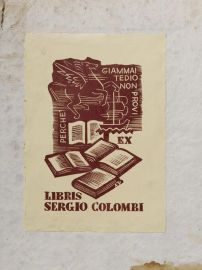 The present copy features the figured bookplate of Sergio Colombi on the inner front cover, and a number of pencilled annotations on the front fly, as well as a typewritten and hand-written note, both applied to the front fly. Other notes in the same minute handwriting appear on a loose card. They could be attributed to Bianca Colombi, the younger sister of the collector, who helped him when Colombi began to have sight problems. These glosses relate information about this edition and the bibliographic repertoires that record it.