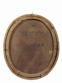 Il riferimento presente al retro della tela rimanda all'identità dell'effigiato.