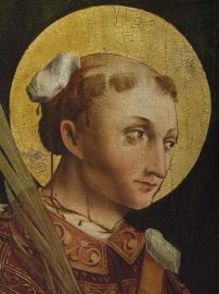L’opera di collezione Vezzosi, riemersa anni addietro dal mercato estero dove era passata senza attribuzione, è stata riconosciuta al pittore da Alessandro Bagnoli che la pubblicherà in sede scientifica. Essa si qualifica come un ritrovamento eccezionale essendo la parte sinistra di un polittico che, perduta la tavola centrale, (forse una Madonna col Bambino), ha nel Musée des Beaux-Arts a Besançon il laterale destro ove sono raffigurati i santi Giovanni Battista e Lorenzo.