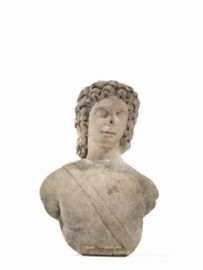 in marmo, raffiguranti due fanciulli, cm 50x38x25,