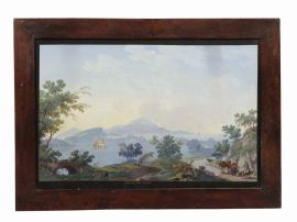 raffiguranti rispettivamente Veduta della real villa di Napoli e Veduta del Fusaro, cm 55x82, entro cornici in legno, cm 69,5x97