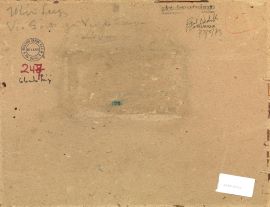 retro: timbro della Galleria Sant'Ambrogio di Milano, timbro della Galleria Carini di Milano, timbro e firma di Paul Nicholls con data 23/5/73