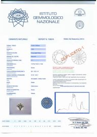 corredato di certificato IGN n. 19224 datato 09/09/2014 che attesta le caratteristiche del diamante