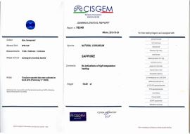 corredato di certificato Cisgem n. 78348 datato 24/10/2012 che attesta l'assenza di trattamento ad alte temperature dello zaffiro
