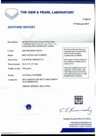 corredato di certificato The Gem & Pearl Laboratory n. 13825 datato 17/02/2017 che attesta l'origine Sri Lanka e l'assenza di trattamenti dello zaffiro