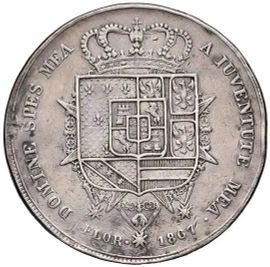 Ag gr. 38,77 D/ Busti accollati a d. R/ stemma sannitico dei Borbone coronato e circondato dal Toson d’oro. MIR 423.