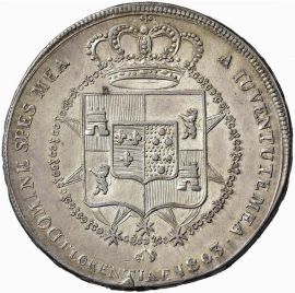 Ag gr. 19,68 D/ Busti accollati a d. R/ stemma sannitico dei Borbone coronato e circondato dal Toson d’oro. MIR 426/1.