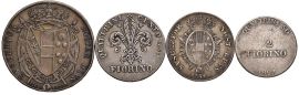 MEZZO FRANCESCONE 1828 (MIR 450/2) patina di antica collezione, FIORINO 1856 (MIR 453/6), PAOLO 1856 (MIR 457/6) patina di antica collezione, MEZZO FIORINO 1827 (MIR 454) Molto raro