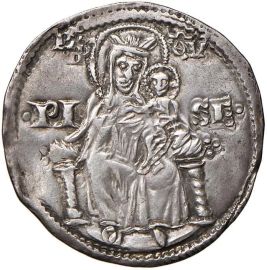Ag gr. 3,21 D/ aquila con le ali spiegate sopra capitello. R/ la Beata Vergine in trono col Bambino in braccio. Baldassarri A.I.1 MIR 395