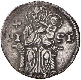 Ag gr. 1,89 D/ aquila con le ali spiegate sopra capitello. R/ la Beata Vergine in trono col Bambino in braccio. A lato segno trifoglio. Baldassarri A.III.2m MIR 403/5