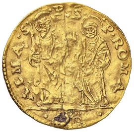 Au gr. 3,38 D/ Stemma Medici sormontato dalle chiavi decussate e dalla tiara R/ I Santi Pietro e Paolo in piedi di fronte MIR 617 Munt. 5 MB frattura del tondello e foro occluso