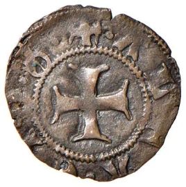 Lo stile iconografico ed epigrafico di questo picciolo, mai contemplato in alcuna pubblicazione numismatica, è riferibile a quello dei primi sanesi d’oro del Visconti. Anche il simbolo di zecca che lo contraddistingue, un globo crucigero interzato, compare sul sanese della I serie e ciò ne attesta la contemporaneità delle due specie (cfr. MIR p. 276, tav. III, n. 60). E’ probabile che la sua coniazione sia avvenuta a seguito della delibera del Consiglio Generale del 27 febbraio 1393 (1392, stile senese), dove si stabiliva la ripresa della coniazione di moneta piccola nera “pella quale fu prescritto che essi più non si avessero ad imbianchire perché pel poco argento contenutovi presto diventavano rossi, credendosi miglior cosa conservarli neri come usavasi nelle altre officine della Toscana” (Promis, pp. 43-44). Secondo la stessa delibera inoltre, indetta per sopperire alla necessità della circolazione di moneta minuta, il peso prescritto doveva essere di gr. 0,461 per ciascun pezzo e ciò trova corrispondenza con quello riscontrato nell’esemplare qui proposto.