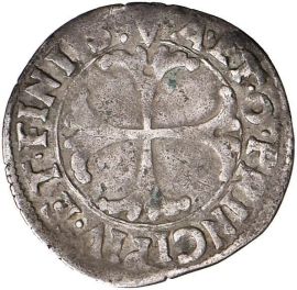 Ag gr. 0,92 D/ + SENA • VETVS • CIVITAS • VIRGI La lupa con la testa retrospiciente mentre allatta i gemelli. R/ scudo radiato a triangolo interzato in fascia A • ET • O • PRINCIPIV • ET • FINIS Croce fogliata. MIR 543 Toderi 47