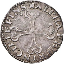 Ag gr. 1,70 D/ + SENA • VETVS • CIVITAS • VIRG la lupa retrospiciente nell’atto di allattare i gemelli. R/ monogramma crociato ALPHA • ET • W • PRINCIPI • E • FINIS croce ornata. CNI 192 var. MIR 558 Promis tav. V, 64 Toderi 63 (questo esemplare)