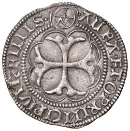 Le lettere I e M impresse nel cerchio troncato sono attribuibili allo zecchiere Jacopo della nobile famiglia senese dei Mignanelli che resse l’officina della zecca, in tempi alterni, dalla metà del secolo sino almeno al 1482 (stile senese, ovvero 1483) quando trasse dalla stessa per il saggio “libras centum decem quatrenorum” (Promis p. 83). Trattasi di una moneta particolarmente ben coniata dal gradevole stile gotico rinascimentale.