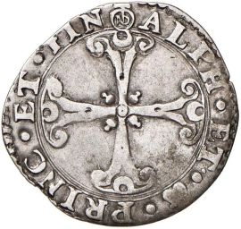 Ag gr. 1,46 D/ SENA VETV • CIVIT • VIRG la Beata Vergine, nimbata e velata, stante di fronte, con la testa lievemente a s. e le mani giunte in preghiera, dentro un’aureola ellittica tra due cherubini per lato. R/ cerchio crociato ALPH • ET • W • PRINC • ET • FIN Croce ornata accantonata da quattro globetti con appendice. CNI 227 MIR 551