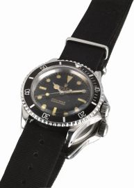 Cassa Oyster in acciaio, fondello e corona a vite, lunetta girevole ancora bi-direzionale, per tempi di immersione e decompressione, quadrante nero “grafica oro” con indici a pallettoni, lancette scheletrate Mercedes con inserti al trizio. No data. Vetro plastica. Movimento a carica automatica cal. 1560.