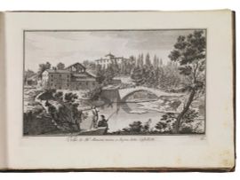 SPLENDIDA RACCOLTA DI PAESAGGI, fondamentale per la vedutistica toscana e la documentazione iconografica sulle ville Medicee e della nobiltà fiorentina. Commissionata a Giuseppe Zocchi dal marchese Andrea Gerini, dedicatario del frontespizio, già alla fine degli anni Trenta del Settecento, l’incisione delle tavole fu affidata ai più valenti calcografi dell’epoca, fra cui: Giovanni Battista Piranesi, Giuliano Giampiccoli, Michele Marieschi, Pietro Monaco, Filippo Morghen, Giuseppe Wagner. Ottime impressioni stampate con ricca inchiostrazione su carta vergellata. Tutte le tavole hanno ampi margini.