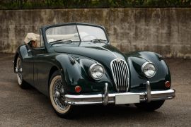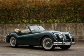 Built between 1954 and 1957, the XK 140 DHC (Drop Head Coupé) of which just 2310 were left-hand drive models, is much rarer than the OTS, of which 3281 were built.