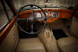 The vehicle proposed here, chassis N° 817705, was manufactured in early 1955. The Drophead Coupé was a luxury version of the XK140, due to its more generous interior space and its more sophisticated finish. Leather and walnut was the name of the game here, just like in the Jaguar luxury saloons of the period.