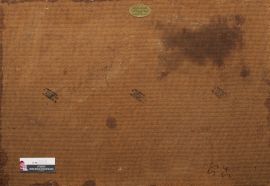 retro: timbri "V. Irolli", cartiglio della XXXIX Mostra Mercato Antiquari Milanesi, cartiglio della Galleria d'Arte Antiquariato Il Servo di Scena di Milano