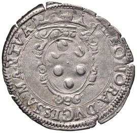 Ar gr. 2,93 D/ VIN D G DVX M IIII ET M F II Stemma inquartato dei Gonzaga coronato. Esergo 10 (soldi) R/ LEONORA DVCISSA MANTVA Stemma dei medici ovale coronato CNI tav. XXVII, 1 MIR 558