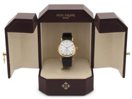 doppia cassa tonda in oro giallo 18kt con fondello a cerniera firmato, quadrante bianco con indici in numeri arabi e piccoli secondi ore sei, movimento a carica manuale. Cinturino in pelle e fibbia in oro giallo originali. Accompagnato da scatola, garanzia e corredo originale completo.