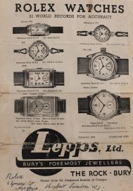 movimento meccanico a carica manuale, fondello a pressione n.16534 corredato di scatola, garanzia, bollettino di marcia e rarissima pubblicità dell'epoca anno 1937