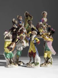 NOVE SCIMMIETTE MUSICANTI, MANIFATTURA MEISSEN, DA MODELLI DI J.J.KAENDLER, SECOLO XIX
