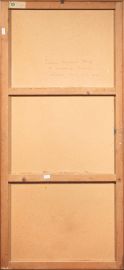 LORENZO TORNABUONI(Roma 1934)In memoria di Alexander Drimka, atletaoil on board, cm 90x201on the reverse label of Il Gabbianoon the reverse inscription: "in memory of Daimka, variation white, red and green"executed in the '70