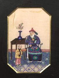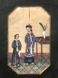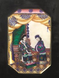 tempera su carta di riso raffigurante personaggi in interno, stile cantonese; cm 31x20 (6)