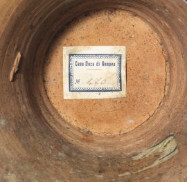 Questa monumentale coppia di anfore, ascrivibile ad una produzione dell’Etruria meridionale o della Campania, viene dalla collezione raccolta da Oddone di Savoia, duca di Genova e figlio di Vittorio Emanuele II, sulla cui figura: M.F. Giubilei, E. Papone (a cura di) Oddone di Savoia (1846-1866). Le collezioni di un principe per Genova, Genova 1996. Il giovane, appassionato di archeologia, integrò il nucleo originario della sua collezione (proveniente da Veio, dono di Maria Cristina di Savoia a Carlo Alberto), con acquisti sul mercato antiquario, e finanziando scavi dell’archeologo Giuseppe Fiorelli a Capua e Cuma: A.M. Pastorino, La collezione archeologica del Principe Odone di Savoia nel Museo Civico di archeologia ligure, in BdA 2004, pp. 197-204. Proprio da questi scavi è probabile che provengano le anfore, riconducibili alla temperie del primo periodo orientalizzante, contraddistinta dall’adozione da parte delle élites etrusche di modelli culturali allogeni.