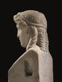 La testa si inserisce nel tipo iconografico di Apollo Ariadne, la cui origine si riferirebbe ad un importante prototipo realizzato ad Atene in età classica, C. Gasparri, Osservazioni sul tipo di Apollo detto Ariadne, in Omaggio a Giovanni Becatti, (Studi Miscellanei 22), Roma 1974-75, pp. 85-98. Fra i confronti significativi si segnalano le due doppie erme con Apollo associato all'Hermes Propylaios, che costituivano parte della transenna dello stadio panatenaico di Atene. La piccola erma era con ogni probabilità un prodotto destinato all'arredo di un edificio privato di pregio, dove costituiva parte di una balaustra.