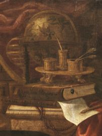 NATURA MORTA CON LIBRI E STRUMENTI SCIENTIFICI