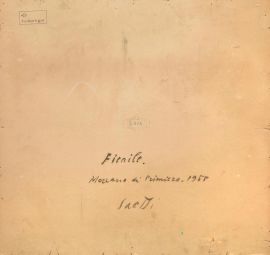 on the reverse: signed, titled, dated "Mezzano di Primiero, 1955", stamp "Faborge", stamp of the Galleria d'Arte Farsetti, Prato