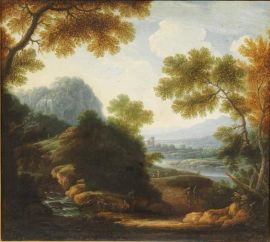 LANDSCAPE WITH FIGURES AND RIVER ON BACKGROUND