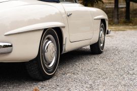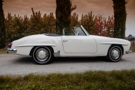 This particular motor car was imported in Italy in 1991, restored and registered in Florence. The vendor has kept it immaculately and she is still as new. She comes with paperwork confirming the 1957 build date, which makes it one of the very few 190 SLs which can be registered in the Mille Miglia.