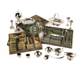 A BOX CONTAINING TABLE COMPLEMENTS, TEA AND COFFEE SERVICE AND CUTLERY, GOLDSMITHS & SILVERSMITHS COMPANY, LONDON, 1928