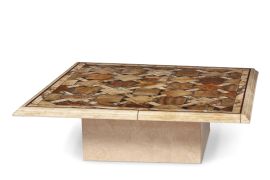 in marmi policromi a formare un motivo di quadrati alternati a rombi, cornice esterna in marmo bianco con bordo a becco di civetta, cm 5x122x122