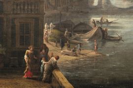 In 1690 Van Wittel took his first trip North, documented by a view of the Borromee Islands on Lago Maggiore; in 1694-95 a longer trip took him to Venice, by way of Florence (where he stopped for a few months working for the Medici court) and Bologna. In 1699 he moved to Naples at the invitation of the Spanish Vice-Roy, the Duke of Medinaceli, formerly the Spanish ambassador in Rome and brother in law of Prince Filippo II Colonna, Van Wittel’s major patron. He was back in Rome in 1702, having painted for Duke Medinaceli his first and most celebrated views of Naples, among them the Darsena, a favourite subject among his clients, both Roman and foreign.