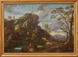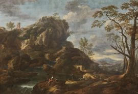 Di origini polacche, Reschi beneficiò del mecenatismo del marchese Pier Antonio Gerini, il quale gli offrì la possibilità di trascorrere gli anni settanta del Seicento nel palazzo della nobile famiglia situato in via del Cocomero a Firenze per studiare le opere della collezione fiorentina, in particolare i dipinti di Salvator Rosa e di Jacques Courtois, detto il Borgognone. Del resto questa significativa roccia irregolare è un chiaro omaggio al pittore partenopeo che Reschi poté studiare, tra l’altro, anche durante gli anni al servizio del cardinale Francesco Maria de’Medici, nella cui villa di Lappeggi visse a lungo, partecipando alla decorazione dei suoi quartieri più significativi con dipinti di paesaggio, battaglie e animali, ma anche dedicandosi alla pittura di ‘oggetti minore’, come paraventi, orologi e specchi.