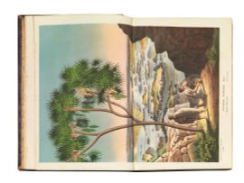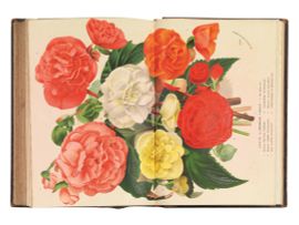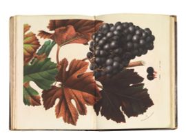 23 volumi in 4to (245 x 164 mm), illustrati da ca. 2031 tavole litografiche, di cui la maggior parte a colori, moltissime a doppia pagina e alcune anche ripiegate in 4. Mezza pelle coeva con titoli e decorazioni in oro al dorso. Legature un po’ sciupate (in alcuni casi il dorso è parzialmente staccato), solo una decina di tavole un po’ brunite, le tavole ripiegate in 4 presentano un piccolo strappo al centro della piegatura, veline fiorite, per il resto tavole splendide ed in ottimo stato di conservazione. SPETTACOLARE RIVISTA DI BOTANICA, ILLUSTRATA DA OLTRE 2000 TAVOLE A COLORI stampate magnificamente da Severeyns, Stroobant e De Pannemaeker con le tecniche più all’avanguardia in quegli anni. Le tavole riproducono nel dettaglio soprattutto fiori, ma anche piante, alberi, foglie, cactus, piante marine, paesaggi esotici e frutta (straordinarie le serie dedicate alle pere e all’uva). Il fondatore della rivista, Louis Van Houtte (1810-1876) fu un orticultore, botanico ed esploratore olandese. Le tavole riproducono un’infinita varietà di piante che egli coltivava nel suo vivaio, all’epoca uno dei più vasti in Europa. Molte specie provenivano da zone esotiche come le Ande e l’Himalaya, o altri luoghi dove Van Houtte si recò per trovare nuovi tipi di palme, orchidee ed altre ricercate piante. Il volume 22, pubblicato all’indomani della morte di Van Houtte, si apre con un suo ritratto litografico e 34 pagine dedicate alla sua vita, seguite da omaggi vari e dal progetto di una statua da erigergli a Gand. Il monumento compare in antiporta al ventitreesimo ed ultimo volume, con lista dei numerosi sottoscrittori e descrizione della sua realizzazione ed inaugurazione.