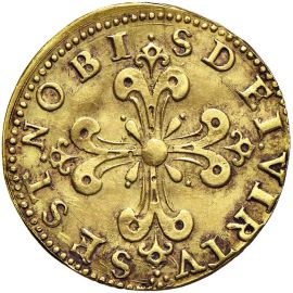 Au gr. 3,38 D/ Stemma mediceo coronato R/ Croce gigliata e ornata accantonata al centro da losanghe MIR 178 Galeotti V, 1/2