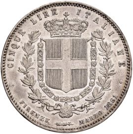 FLORENCE VITTORIO EMANUELE II KING OF ITALY (1859-1861) CINQUE LIRE 1861 VERY RARE EF/almost EF