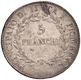 LUCCA ELISA BONAPARTE E FELICE BACIOCCHI (1805-1814) CINQUE FRANCHI 1806 VF+