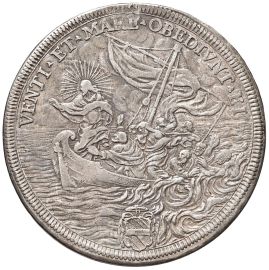 Ar gr. 31,72 D/ INNOCEN XI PONT MAX A III Busto a d. con camauro, mozzetta e stola ornata; nel taglio del braccio, HAMERANO (Giovanni Hamerani, incisore) R/ VENTI ET MARE OBEDIVNT EI Navicella con gli Apostoli verso s.; Cristo, sulla prua, calma le acque. Dietro la navicella sul mare in burrasca e, sotto, armetta Corsini. Muntoni 43 Berman 2093