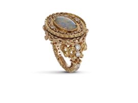 GOLD AND PLATINUM "DIOR A VERSAILLES" OPAL AND DIAMOND RING