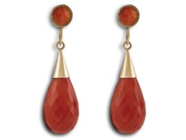 la collana è composta da trentacinque boulles sfaccettate digradanti di mm 20-12 ed una chiusura con spola di corallo ovale sfaccettata,lungh. cm 54.Gli orecchini sono composti da una grande goccia sfaccettata alta cm 2,2 sorretta da un elemento in oro con al centro un spola di forma circolare sempre in corallo, lungh. cm 1,5, punzone 18 Kt, peso complessivo g 190