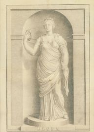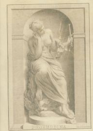Sui fogli qui offerti, l’anonimo disegnatore, attivo con ogni probabilità tra la fine del Seicento e l’inizio del Settecento, quando il catalogo illustrato della collezione del Giustiniani era ormai diffusamente conosciuto, ha inserito le figure derivanti dagli esemplari scultorei all’interno di nicchie e al di sopra di piedistalli circolari sul quale è riportato il nome della divinità raffigurata, modificando in alcuni casi il modello incisorio. È il caso della sensuale Proserpina, desunta dal bulino di Cornelis Bloemaert (Galleria Giustiniana, I, 142) a sua volta ispiratosi alla statua di Musa conservata presso il palazzo del marchese Giustiani e oggi al Metropolitan di New York: il masso roccioso sul quale era seduta si trasforma nel nostro disegno in fiamme e nella sua mano sinistra è posto uno scettro per renderla a tutti gli effetti la divinità mitologica rapita da Plutone e portata nell’Averno.
