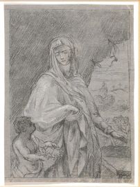La coppia di disegni replicano con varianti una nota composizione di Carlo Maratta (Camerano, 1625 - Roma, 1713) dipinta, a quanto ci tramanda Bellori, nel 1691 per il papa Alessandro VIII, e identificata ipoteticamente da Stella Rudolph con quella già in collezione Pallavicini e oggi nel Derbyshire in Gran Bretagna (cfr. S. Rudolph, Niccolò Maria Pallavini. L'ascesa al Tempio della Virtù asttraverso il Mecenatismo, Roma 1995, pp. 50-51, fig. 29).